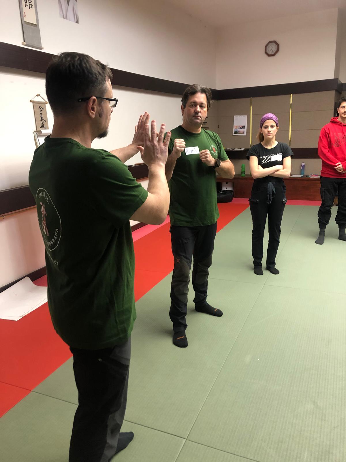 Instruktorům Václavovi a Rosťovi (kteří byli úžasní) šlo skutečně o to naučit nás se bránit vůči reálným situacím. To beru jako velké plus ve srovnání s klasickým "klubovým" učení se bojového umění/sebeobrany.